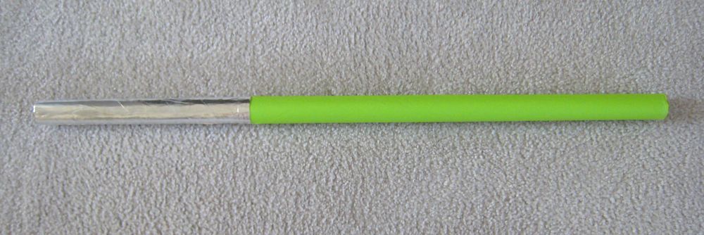 It was another fun recycled project, with a wrapping paper tube, a sheet of tissue paper, a bit of extra tin foil and some tape. I rolled the tissue paper first, sealed it, then the tinfoil handle, then finally the thin band of tinfoil to hide the joining line (and hopefully prevent little fingers from unsealing the edges).
