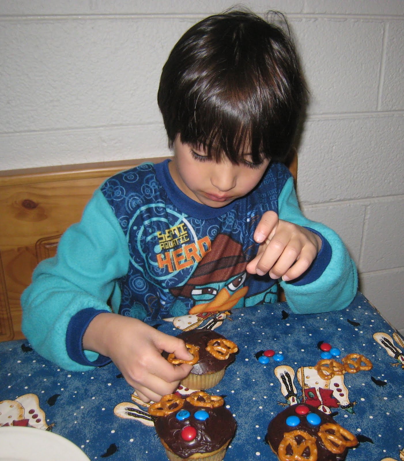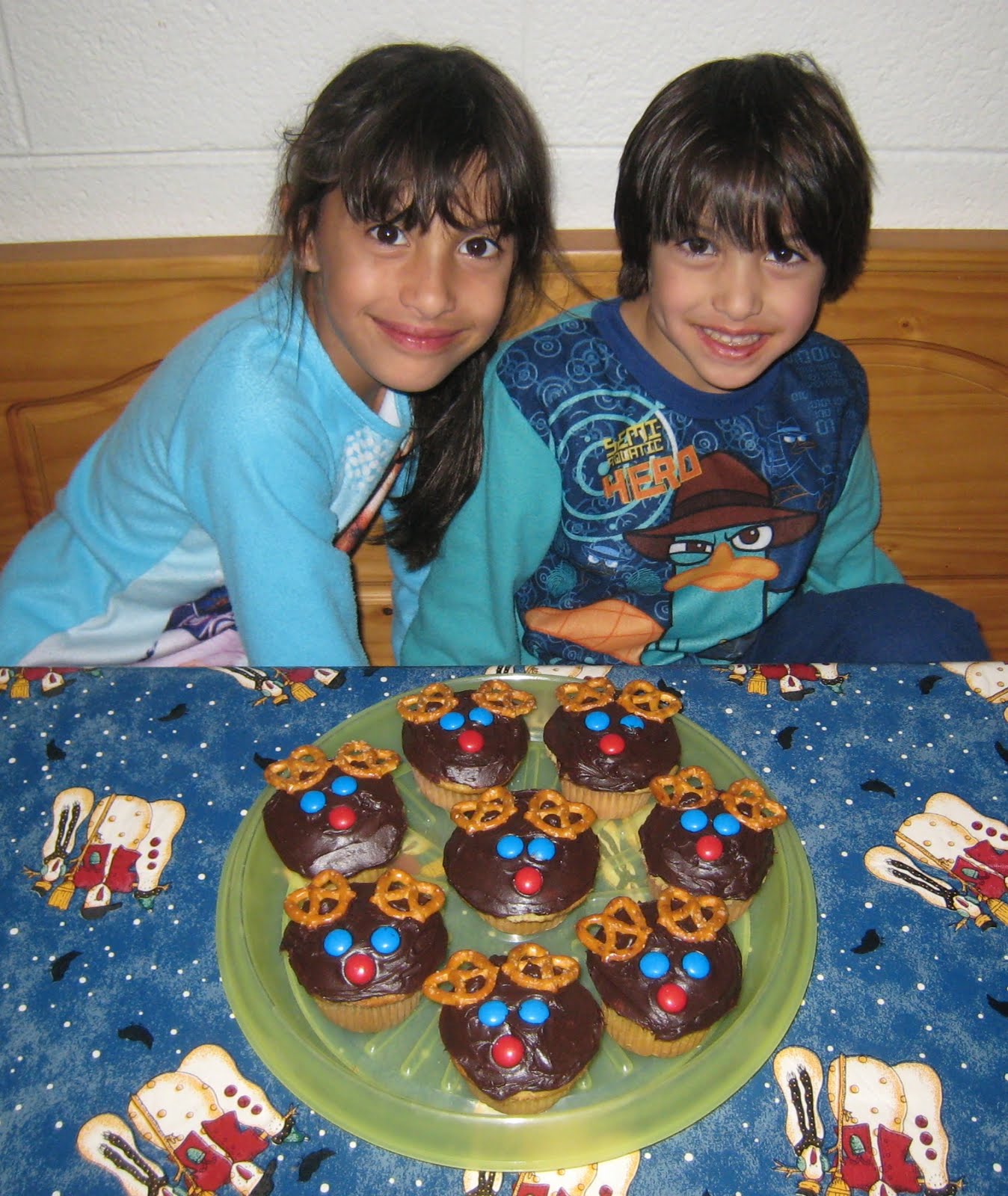 And voila! Reindeer cupcakes, and jammies, since we did this at night time.