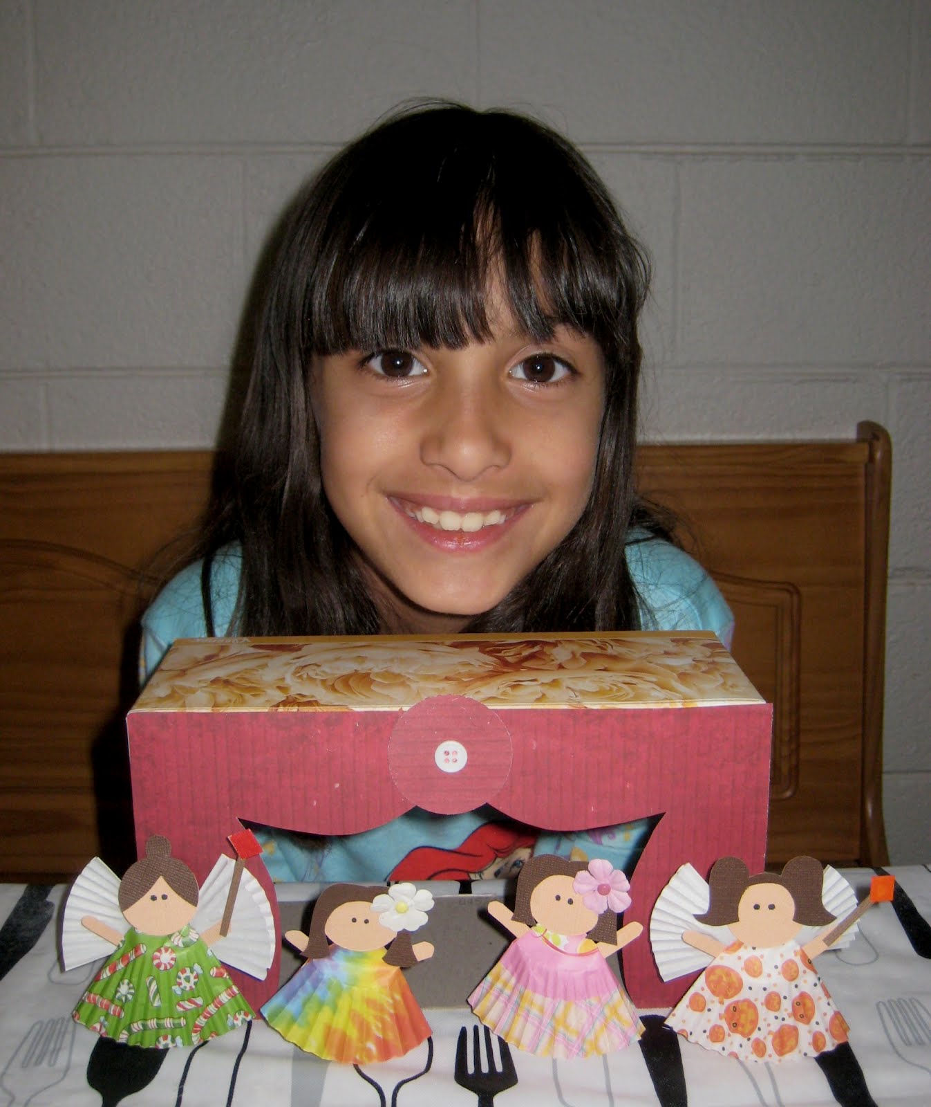 For starters, we have two little girl puppets and two holiday fairy puppets. I have been tasked with building scenery and more puppets while she is off at school. Oh, and if I have time, a dressing room for the theater. I'll get right on that.