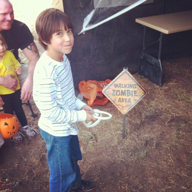 We've been to two awesome Halloween parties already--one at the Brigade where Ben found a zombie ring toss game, and one just tonight at Battalion where he discovered that he loves haunted houses.