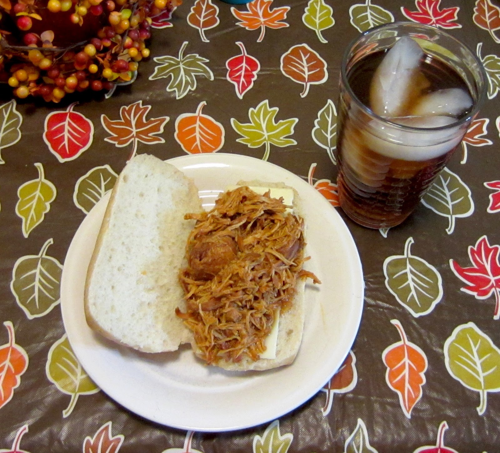 Now, since we are displaced Texans, we generally feel that tea is a great drink with any meal, but in the interest of food pairings, meal time had to be more traditional southern fare. We opted for pulled barbecue chicken, which always goes well with sweet tea. While at Walmart, I picked up the ingredients for that and opted for the crockpot version (cook all day, shred, serve). We hadn't had that in awhile and it tasted wonderful, especially with the tea.