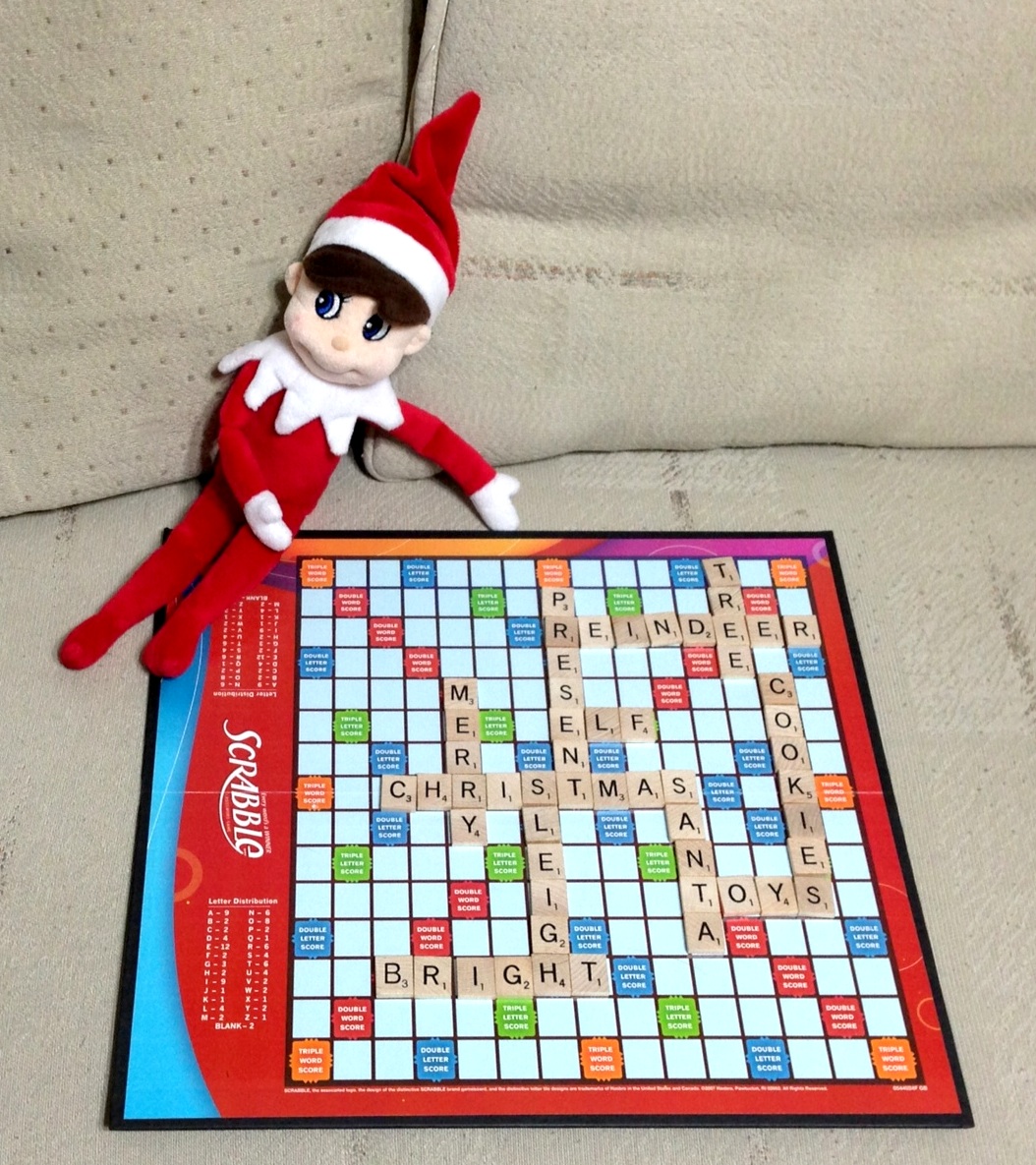 He set up his very own Scrabble game, but only using Christmas-related words!