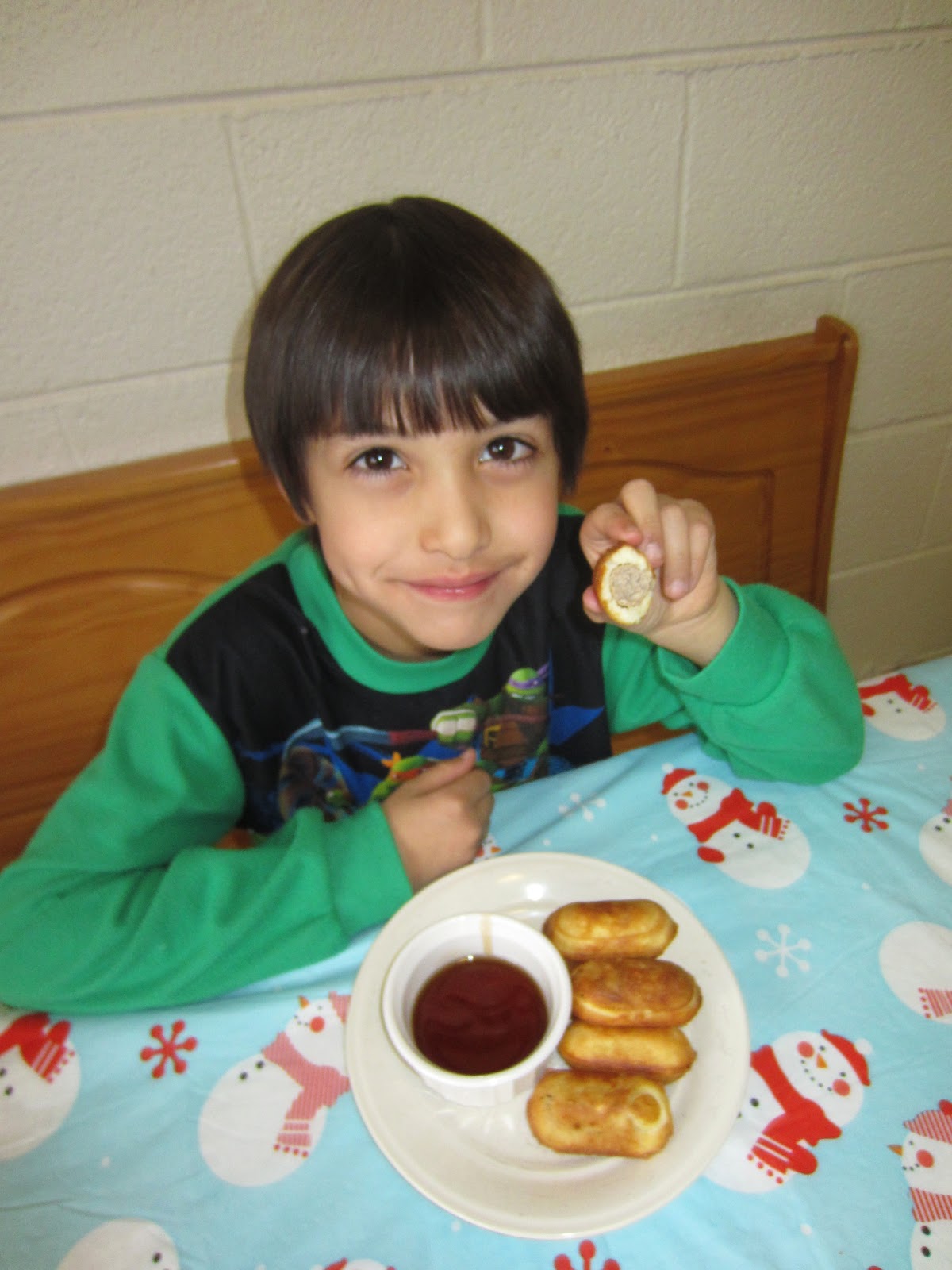 He also suggested I take this picture to show off what is inside the sausage dogs, so I did. He's an awesome blog helper. He also made a request that if any of the sausage dogs were leftover, he wanted them in his lunch today. So I obliged, again.
