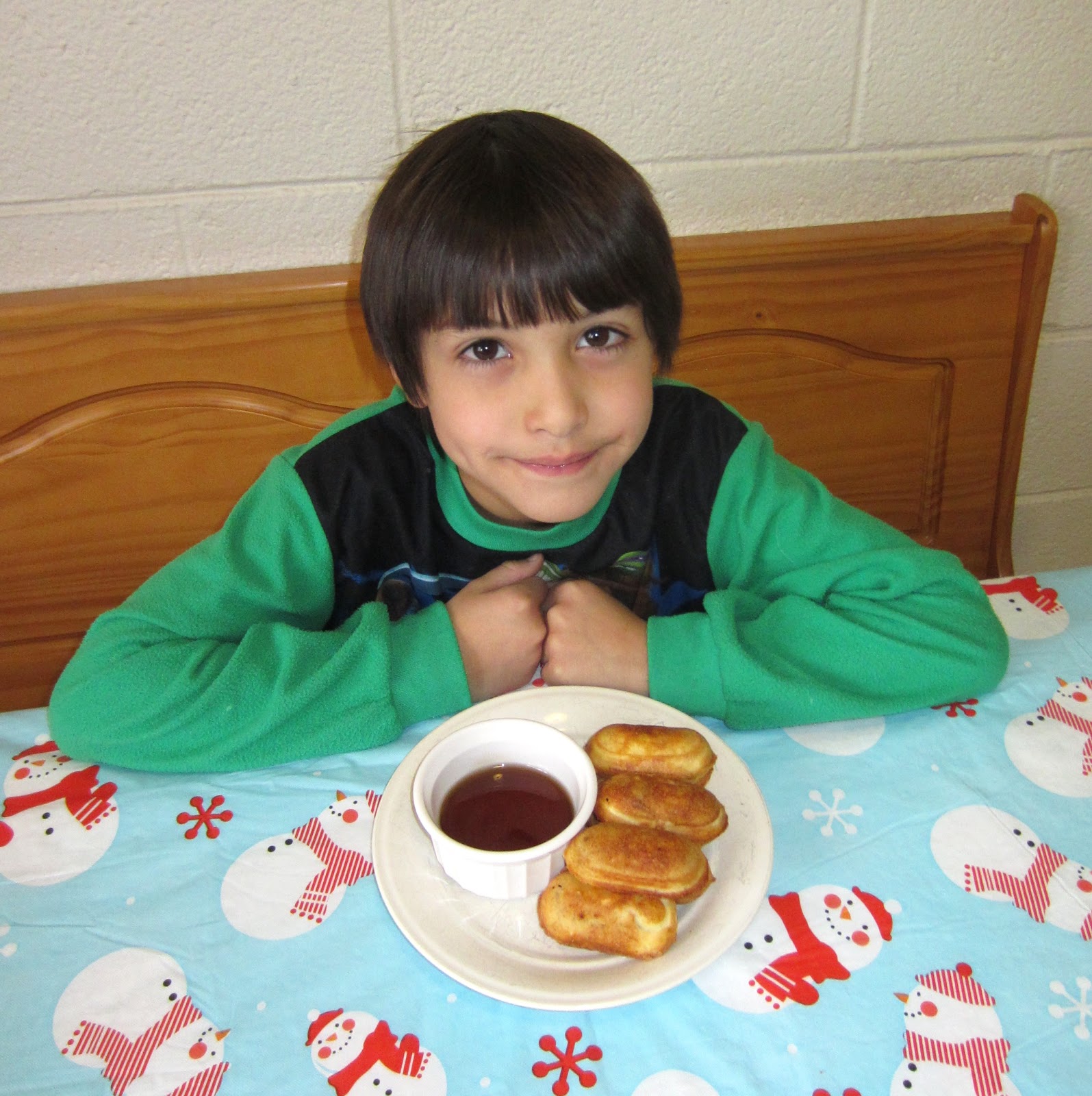 A typical weekend breakfast at our house involves both kids and usually Faith's BFF. However, tween girls are not apt to let you take pictures of them in the mornings, so Mr. Ben agreed to be my blog helper. The verdict? He loved them! One package of Jennie-O Turkey Sausage yielded 27 mini sausage dogs, with one small piece of sausage leftover (Ben ate that). I also made a second batch to put in the freezer for school mornings. They can be reheated in the toaster oven for a healthy protein breakfast in only a few minutes.