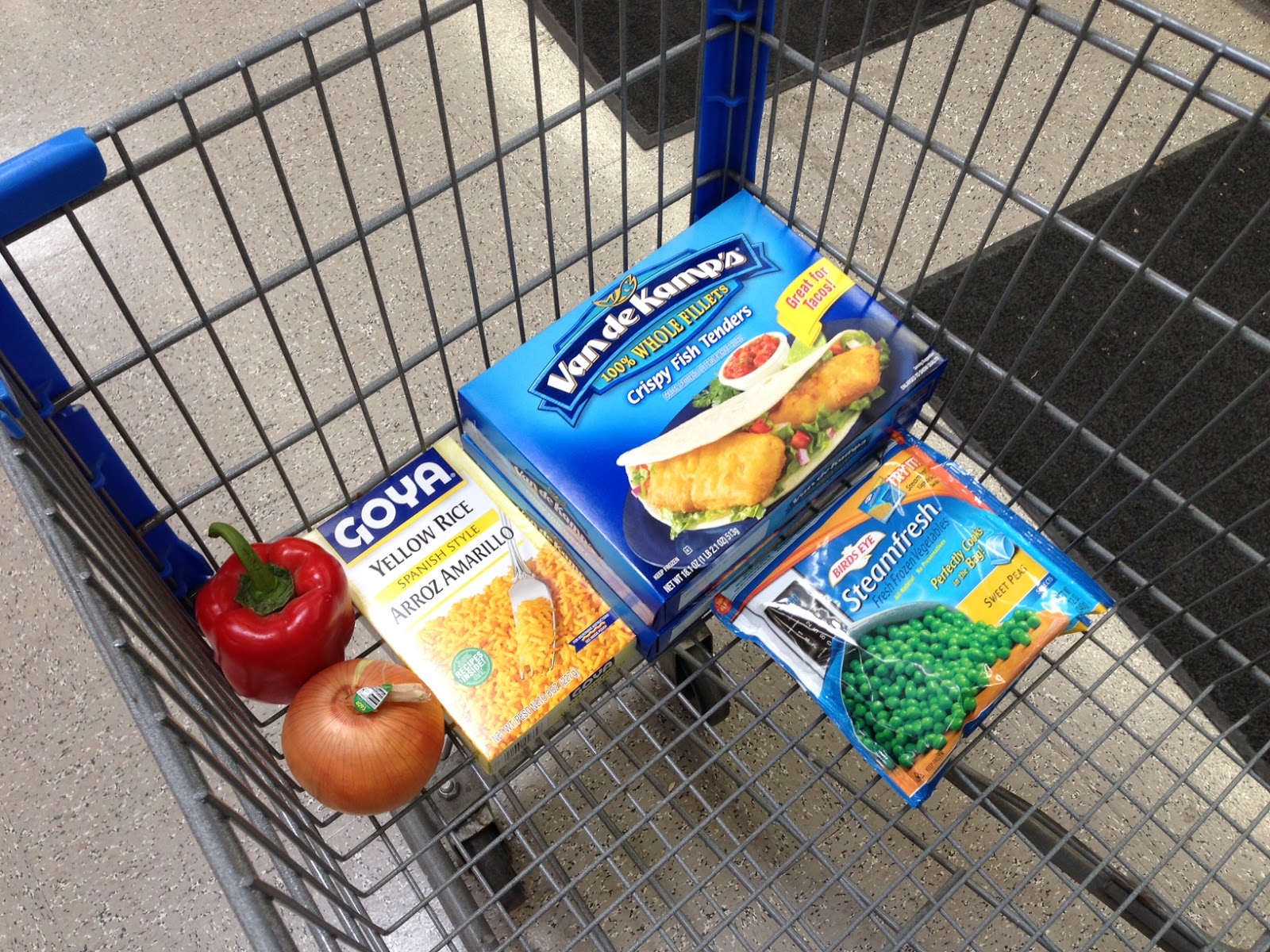 I recruited my little shopping helpers (who were off school on Thursday and Friday) and head to Walmart to pick up Van de Kamp's Fish Tenders, some Bird's Eye Sweet Peas, and a few other ingredients to surprise the husband with paella for dinner. We also ended up with a bunch of also needed groceries, since we were already at the store. Good news, I'm set for next week!