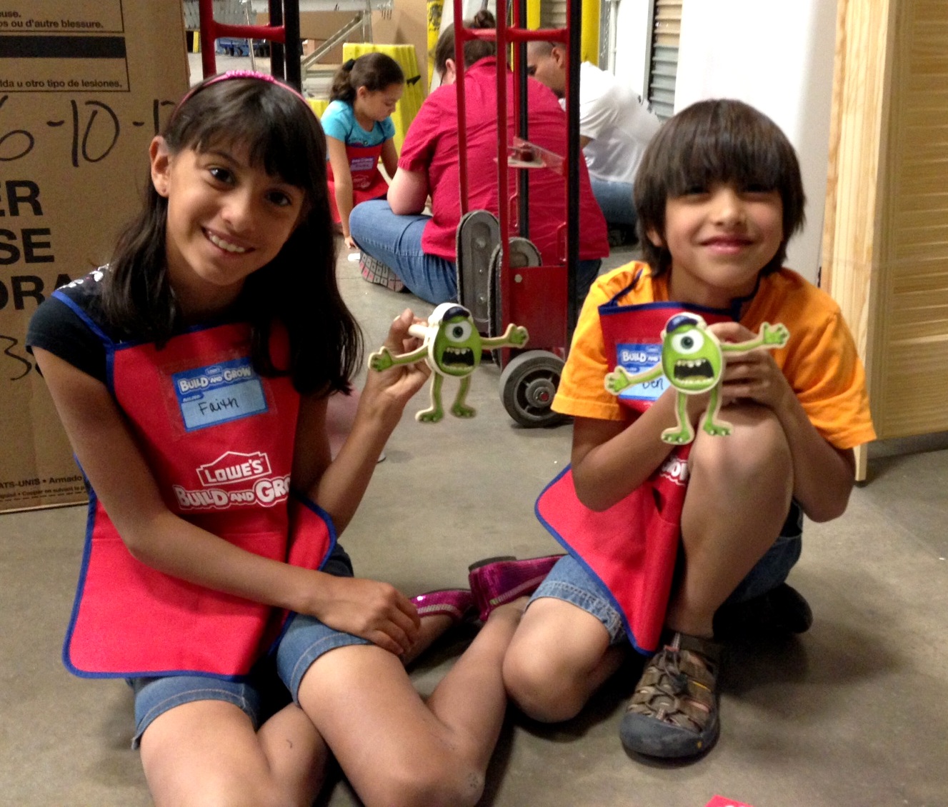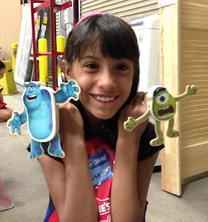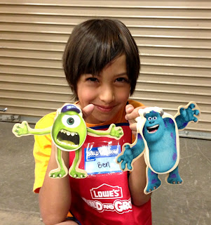 On a forum I am on, someone posted that this weekend started a series of Disney Pixar projects, beginning with Monsters University, so I decided to sign the kids up. Lowes still offers Saturday morning clinics, but they also offer a second time, on Sunday afternoons! Since we are not get up & go in the morning people, I signed us up for Sunday.