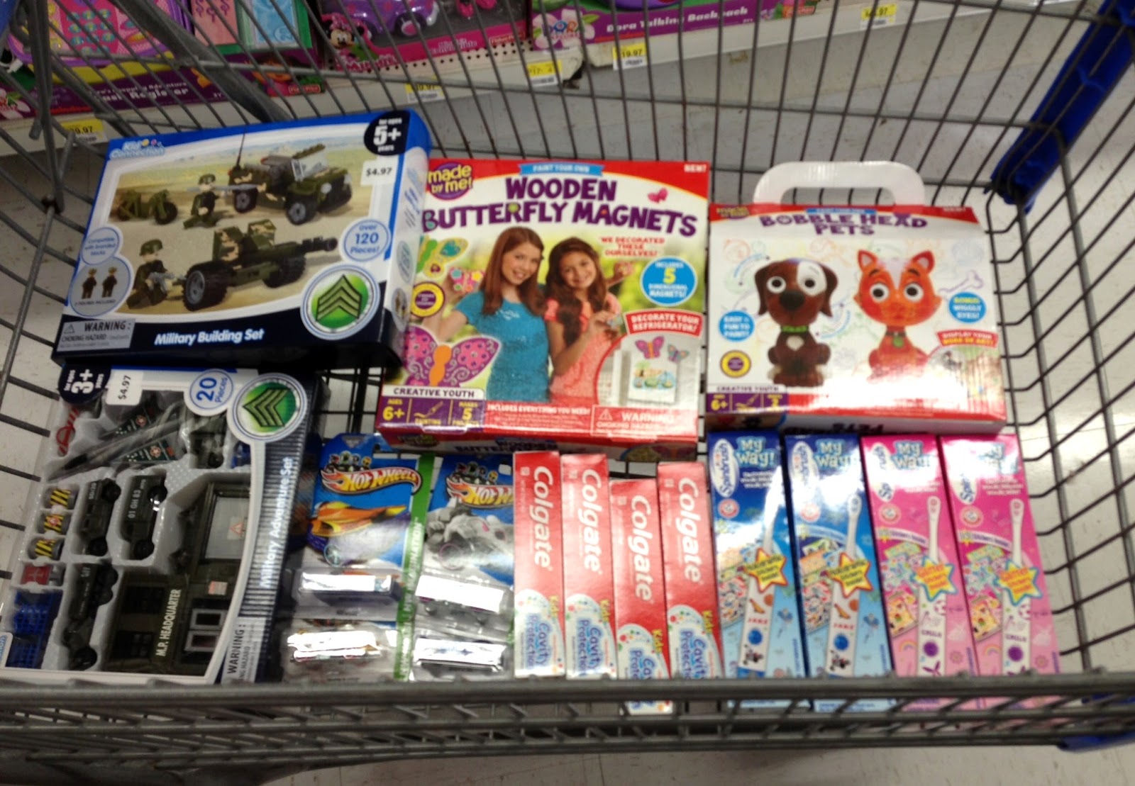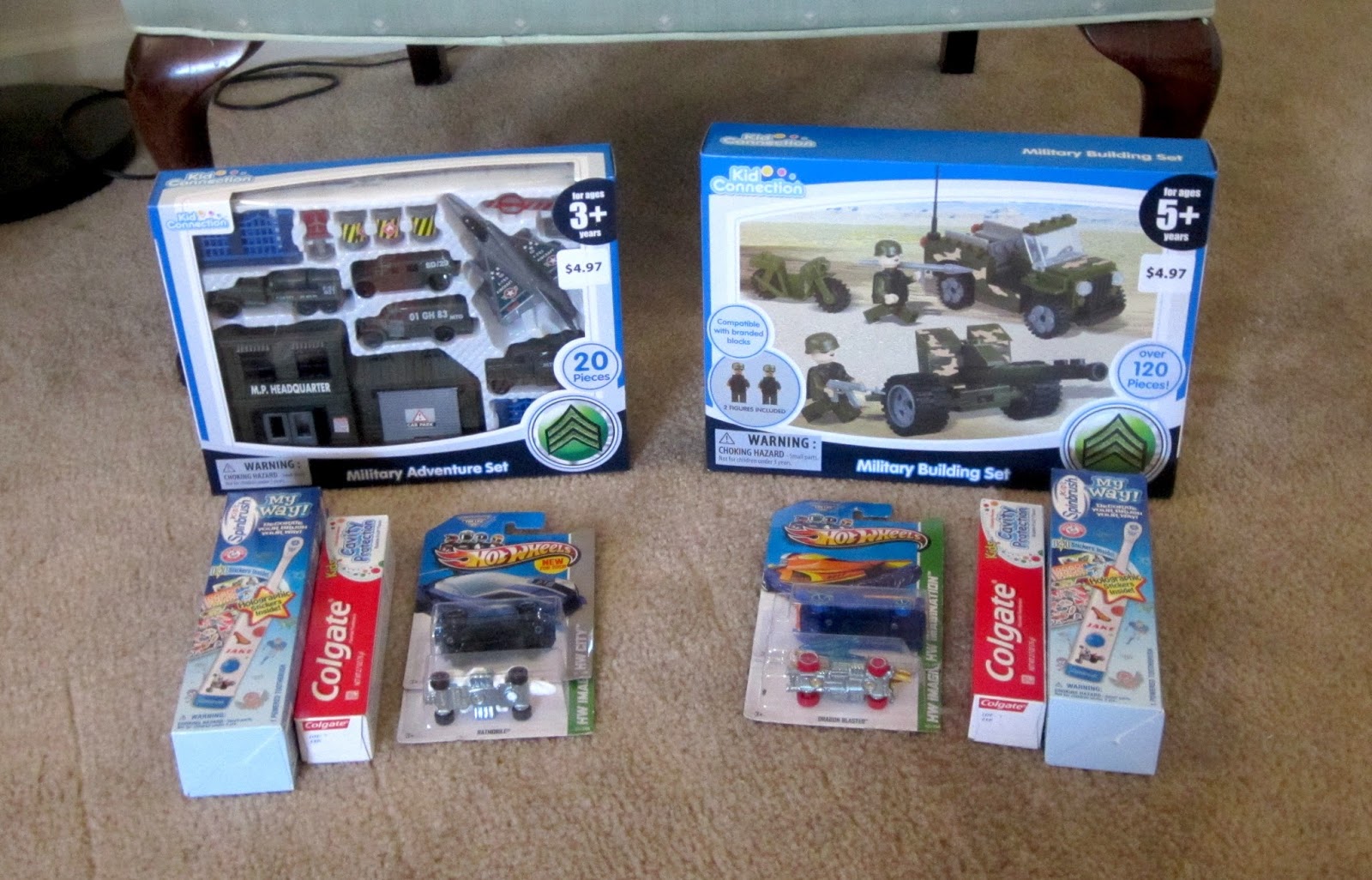 Spinbrushes, toothpaste, Army toys and Hot Wheels