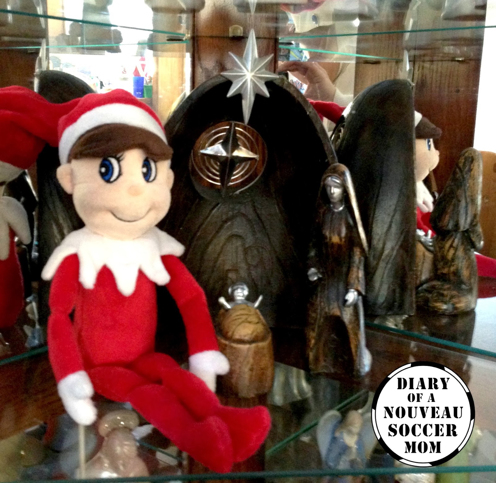 David the Elf was much harder to find this morning. He had somehow made his way into my curio cabinet of nativities and decided to join in a scene. The kids had quite the elf hunt trying to find him.
