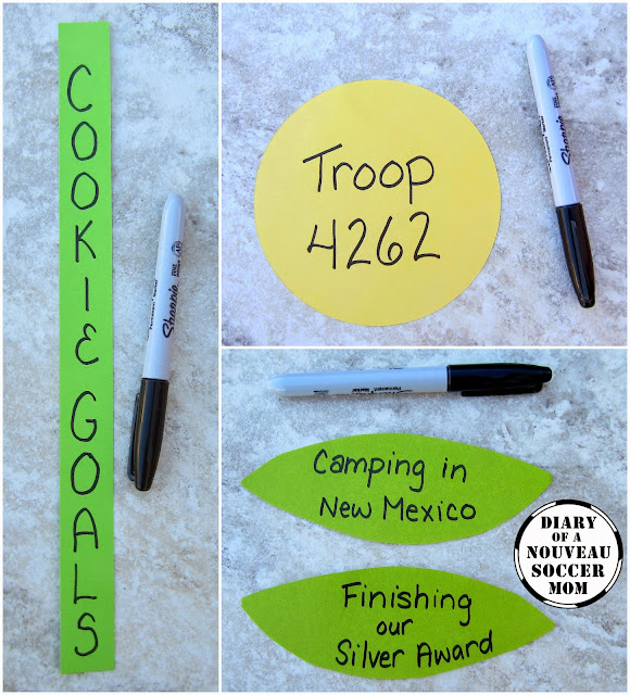 - Have the girls pick two cookie goals for the leaves and write them down, along with the troop number on the yellow circle and "Cookie Goals" on the stem.